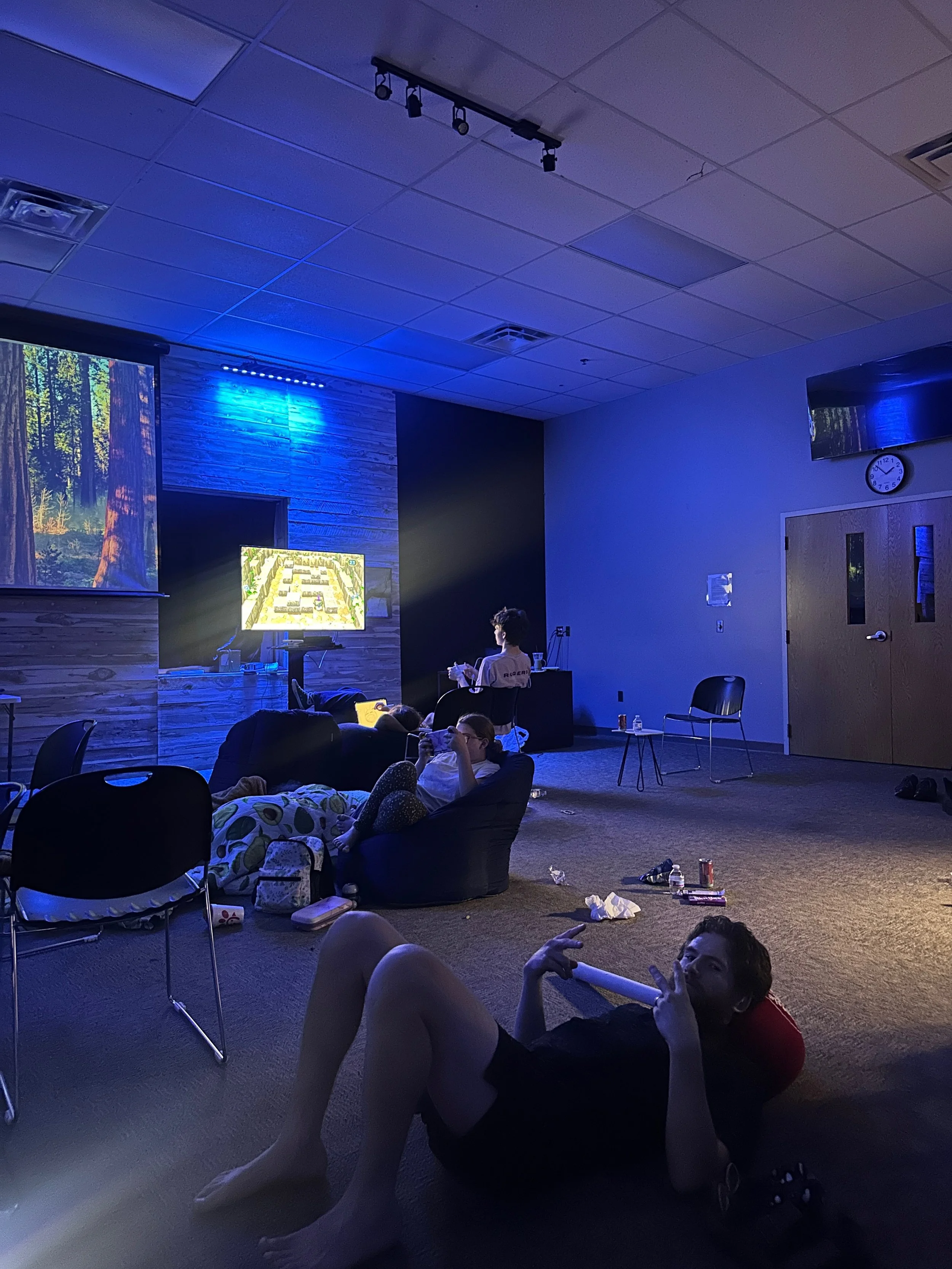 Our teens worship with their families in our sanctuary at 9:30am. During the Grow Group hour (11am), students do a group game before splitting into middle and high school bible study.